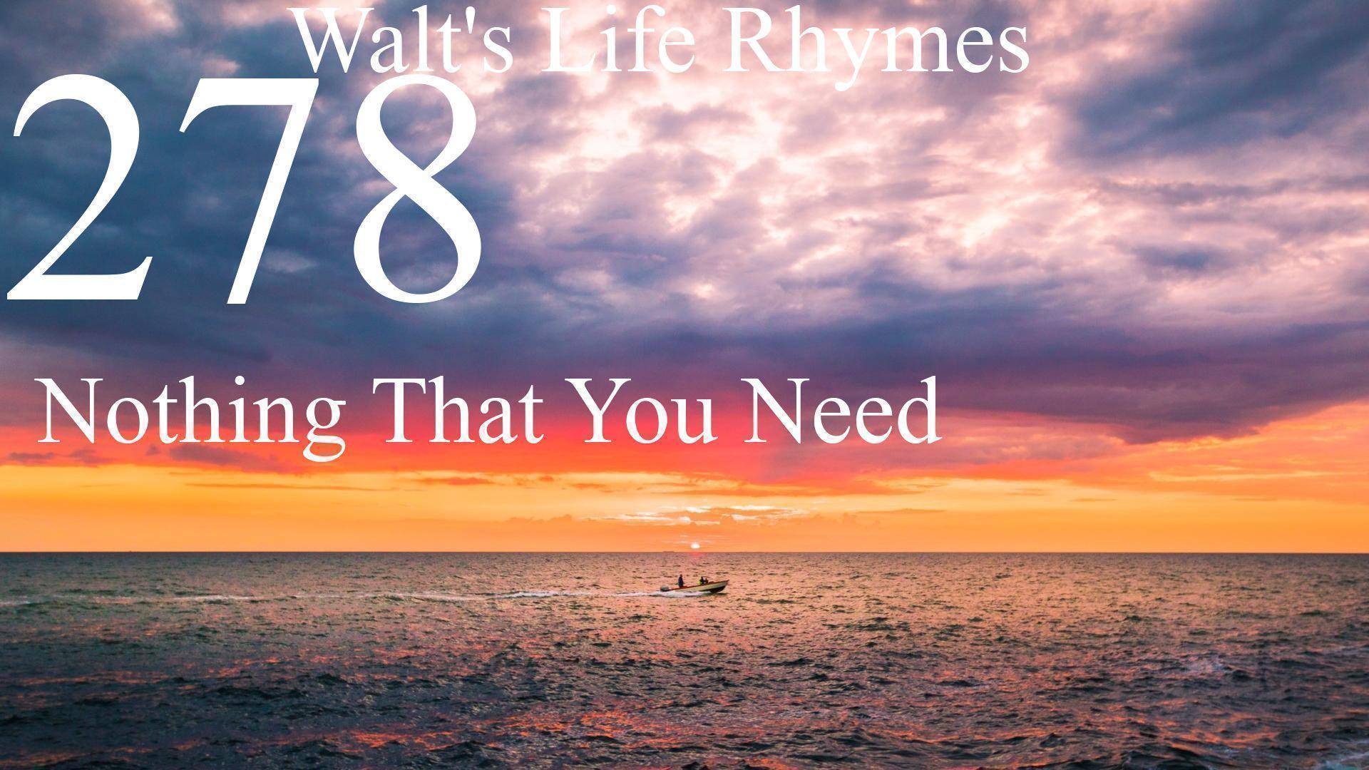 I just finished reading Neale Donald Walsch's Communion with God, part of the Conversations with God series. Today's life rhyme was inspired by an understanding of the first of the Ten Illusions of Humans--that "Need" exists. These ten beliefs form the basis of the flawed perception of reality that causes all of mankind's woes. The ten illusions are that